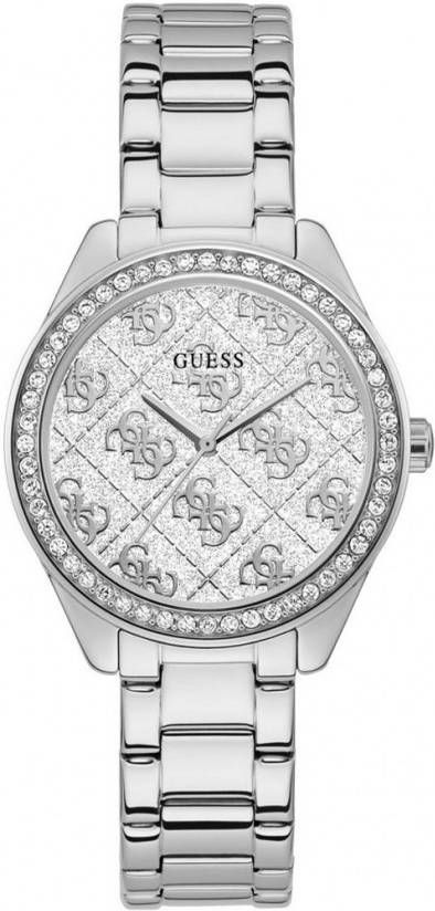 Deze gave Guess Watch Sugar is het perfecte horloge voor jouw look. Dit horloge is gemaakt van roestvrij staal en heeft een witte wijzerplaat me een gaaf Guess printje. Dit horloge heeft een ronde kast met een diameter van 37 millimeter en een glasplaat van mineraal. Rondom de kast vind je stijlvolle steentjes die gemaakt zijn van kristal. Het horloge is uitgegeven in een zilver model en heeft een stijlvolle schakelarmband. De band heeft een lengte van 19 centimeter en is 16 millimeter breed. Met de vouwsluiting kun je altijd met gemak het horloge zelf om en af doen. Een stijlvol accessoire om te combineren met iedere outfit.